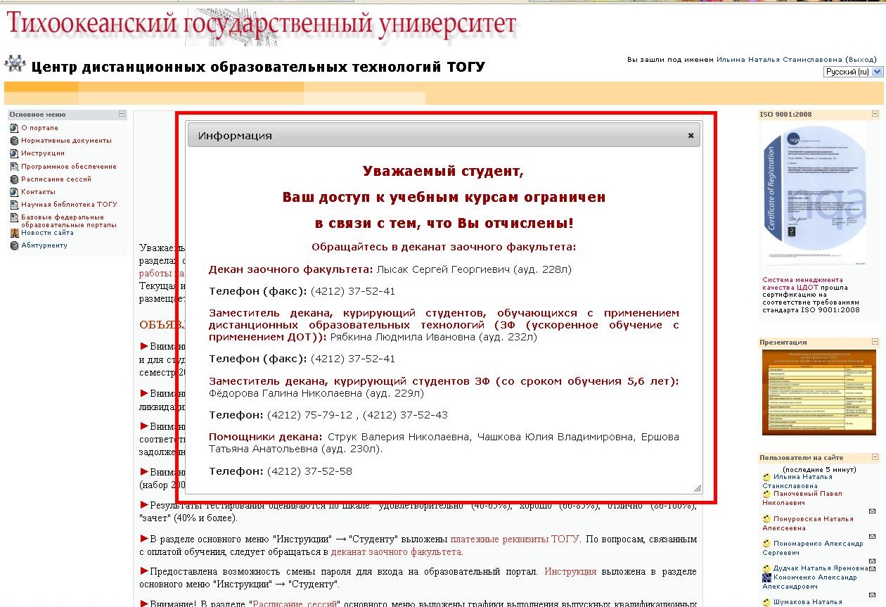 - Часть 1. 1) Доступ на образовательный портал 2) Вход в личный кабинет 3) Программное обеспечение 4) Главное меню. Раздел «Инструкции» 5) Учебный план 6) Сроки проведения сессий. Расписание сессии