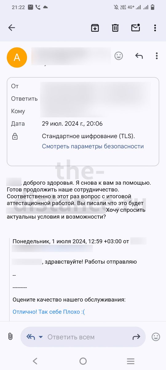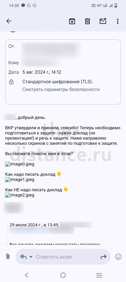 Отзывы Отзывы наших клиентов ◄ 1 ... 5 6 7 ... 12 ► О сайте Поделитесь в соцсетях: Оставить комментарий Inna Petrova 18 минут назад Нужно пройти преддипломную практику у нескольких предметов написать введение и отчет по практике так де сдать 4 экзамена после практики Иван, помощь с обучением 25 минут назад Inna Petrova, здравствуйте! Мы можем Вам помочь. Прошу Вас прислать всю необходимую информацию на почту и написать что необходимо выполнить. Я посмотрю описание к заданиям и напишу Вам стоимость и срок выполнения. Информацию нужно прислать на почту info@the-distance.ru Коля 2 часа назад Здравствуйте, сколько будет стоить данная работа и как заказать? Иван, помощь с обучением 2 часа назад Николай, здравствуйте! Мы можем Вам помочь. Прошу Вас прислать всю необходимую информацию на почту и написать что необходимо выполнить. Я посмотрю описание к заданиям и напишу Вам стоимость и срок выполнения. Информацию нужно прислать на почту info@the-distance.ru Инкогнито 5 часов назад Сделать презентацию и защитную речь к дипломной работе по теме: Источники права социального обеспечения. Сам диплом готов, пришлю его Вам по запросу! Иван, помощь с обучением 6 часов назад Здравствуйте! Мы можем Вам помочь. Прошу Вас прислать всю необходимую информацию на почту и написать что необходимо выполнить. Я посмотрю описание к заданиям и напишу Вам стоимость и срок выполнения. Информацию нужно прислать на почту info@the-distance.ru Василий 12 часов назад Здравствуйте. ищу экзаменационные билеты с ответами для прохождения вступительного теста по теме Общая социальная психология на магистратуру в Московский институт психоанализа. Иван, помощь с обучением 12 часов назад Василий, здравствуйте! Мы можем Вам помочь. Прошу Вас прислать всю необходимую информацию на почту и написать что необходимо выполнить. Я посмотрю описание к заданиям и напишу Вам стоимость и срок выполнения. Информацию нужно прислать на почту info@the-distance.ru Анна Михайловна 1 день назад Нужно закрыть предмет «Микроэкономика» за сколько времени и за какую цену сделаете? Иван, помощь с обучением 1 день назад Анна Михайловна, здравствуйте! Мы можем Вам помочь. Прошу Вас прислать всю необходимую информацию на почту и написать что необходимо выполнить. Я посмотрю описание к заданиям и напишу Вам стоимость и срок выполнения. Информацию нужно прислать на почту info@the-distance.ru Сергей 1 день назад Здравствуйте. Нужен отчёт о прохождении практики, специальность Государственное и муниципальное управление. Планирую пройти практику в школе там, где работаю. Иван, помощь с обучением 1 день назад Сергей, здравствуйте! Мы можем Вам помочь. Прошу Вас прислать всю необходимую информацию на почту и написать что необходимо выполнить. Я посмотрю описание к заданиям и напишу Вам стоимость и срок выполнения. Информацию нужно прислать на почту info@the-distance.ru Инна 1 день назад Добрый день! Учусь на 2 курсе по специальности земельно-имущественные отношения. Нужен отчет по учебной практике. Подскажите, пожалуйста, стоимость и сроки выполнения? Иван, помощь с обучением 1 день назад Инна, здравствуйте! Мы можем Вам помочь. Прошу Вас прислать всю необходимую информацию на почту и написать что необходимо выполнить. Я посмотрю описание к заданиям и напишу Вам стоимость и срок выполнения. Информацию нужно прислать на почту info@the-distance.ru Студент 2 дня назад Здравствуйте, у меня сег