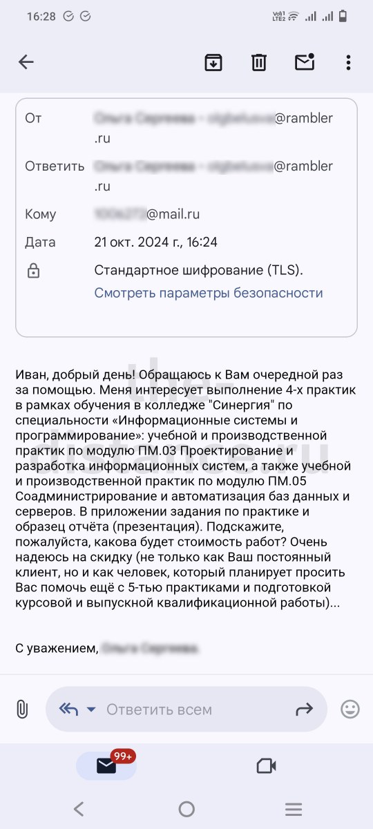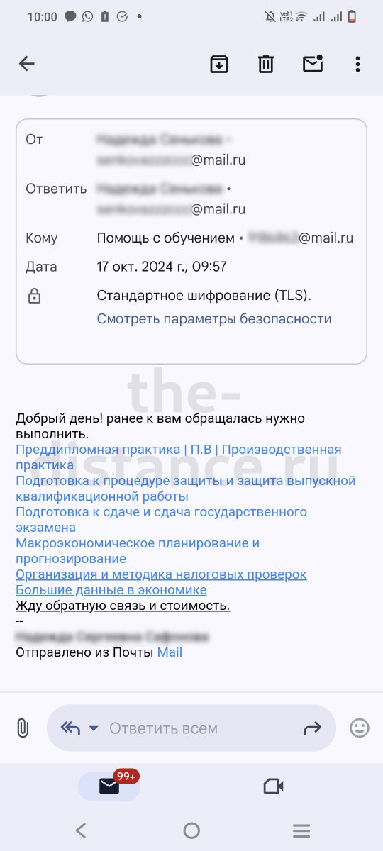 Отзывы Отзывы наших клиентов ◄ 1 ... 8 9 10 ... 12 ► О сайте Поделитесь в соцсетях: Оставить комментарий Inna Petrova 18 минут назад Нужно пройти преддипломную практику у нескольких предметов написать введение и отчет по практике так де сдать 4 экзамена после практики Иван, помощь с обучением 25 минут назад Inna Petrova, здравствуйте! Мы можем Вам помочь. Прошу Вас прислать всю необходимую информацию на почту и написать что необходимо выполнить. Я посмотрю описание к заданиям и напишу Вам стоимость и срок выполнения. Информацию нужно прислать на почту info@the-distance.ru Коля 2 часа назад Здравствуйте, сколько будет стоить данная работа и как заказать? Иван, помощь с обучением 2 часа назад Николай, здравствуйте! Мы можем Вам помочь. Прошу Вас прислать всю необходимую информацию на почту и написать что необходимо выполнить. Я посмотрю описание к заданиям и напишу Вам стоимость и срок выполнения. Информацию нужно прислать на почту info@the-distance.ru Инкогнито 5 часов назад Сделать презентацию и защитную речь к дипломной работе по теме: Источники права социального обеспечения. Сам диплом готов, пришлю его Вам по запросу! Иван, помощь с обучением 6 часов назад Здравствуйте! Мы можем Вам помочь. Прошу Вас прислать всю необходимую информацию на почту и написать что необходимо выполнить. Я посмотрю описание к заданиям и напишу Вам стоимость и срок выполнения. Информацию нужно прислать на почту info@the-distance.ru Василий 12 часов назад Здравствуйте. ищу экзаменационные билеты с ответами для прохождения вступительного теста по теме Общая социальная психология на магистратуру в Московский институт психоанализа. Иван, помощь с обучением 12 часов назад Василий, здравствуйте! Мы можем Вам помочь. Прошу Вас прислать всю необходимую информацию на почту и написать что необходимо выполнить. Я посмотрю описание к заданиям и напишу Вам стоимость и срок выполнения. Информацию нужно прислать на почту info@the-distance.ru Анна Михайловна 1 день назад Нужно закрыть предмет «Микроэкономика» за сколько времени и за какую цену сделаете? Иван, помощь с обучением 1 день назад Анна Михайловна, здравствуйте! Мы можем Вам помочь. Прошу Вас прислать всю необходимую информацию на почту и написать что необходимо выполнить. Я посмотрю описание к заданиям и напишу Вам стоимость и срок выполнения. Информацию нужно прислать на почту info@the-distance.ru Сергей 1 день назад Здравствуйте. Нужен отчёт о прохождении практики, специальность Государственное и муниципальное управление. Планирую пройти практику в школе там, где работаю. Иван, помощь с обучением 1 день назад Сергей, здравствуйте! Мы можем Вам помочь. Прошу Вас прислать всю необходимую информацию на почту и написать что необходимо выполнить. Я посмотрю описание к заданиям и напишу Вам стоимость и срок выполнения. Информацию нужно прислать на почту info@the-distance.ru Инна 1 день назад Добрый день! Учусь на 2 курсе по специальности земельно-имущественные отношения. Нужен отчет по учебной практике. Подскажите, пожалуйста, стоимость и сроки выполнения? Иван, помощь с обучением 1 день назад Инна, здравствуйте! Мы можем Вам помочь. Прошу Вас прислать всю необходимую информацию на почту и написать что необходимо выполнить. Я посмотрю описание к заданиям и напишу Вам стоимость и срок выполнения. Информацию нужно прислать на почту info@the-distance.ru Студент 2 дня назад Здравствуйте, у меня сег